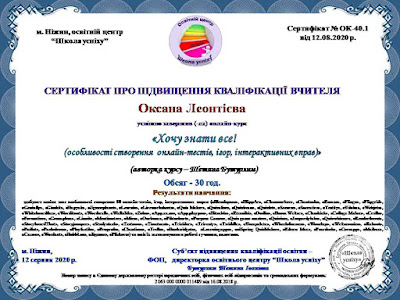 Сертифікати учасників онлайн-курсу "Хочу знати все!"